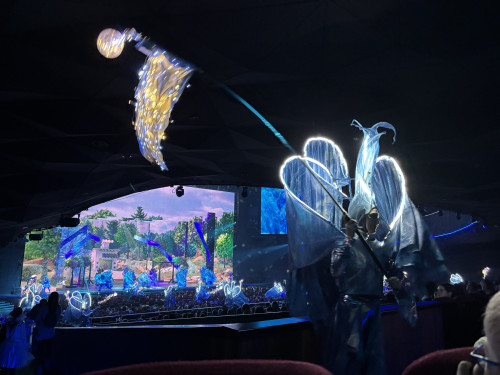 Красочное шоу, прекрасная атмосфера, хорошая игра актеров и аниматоров, которые ходили по рядам и взаимодействовали со зрителями